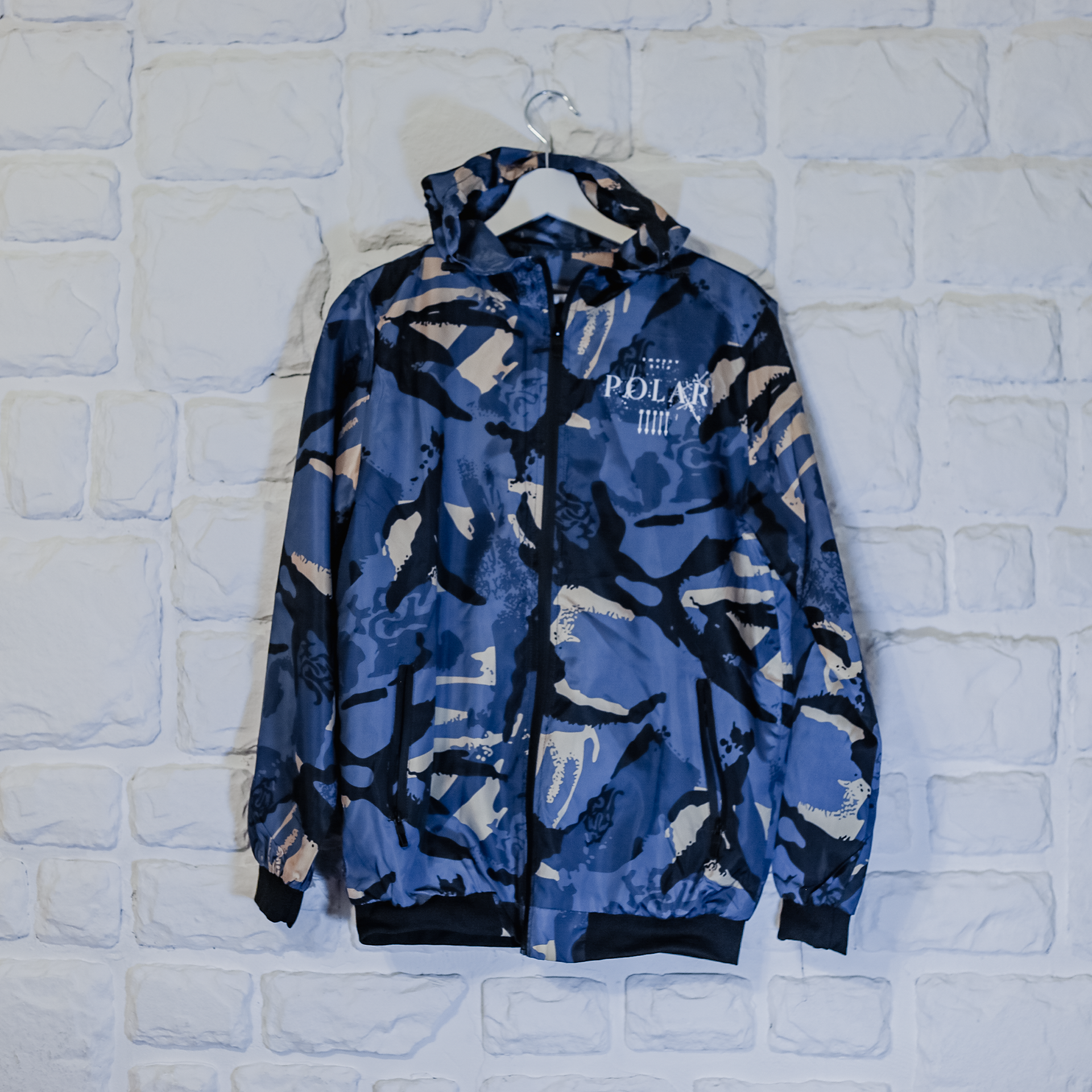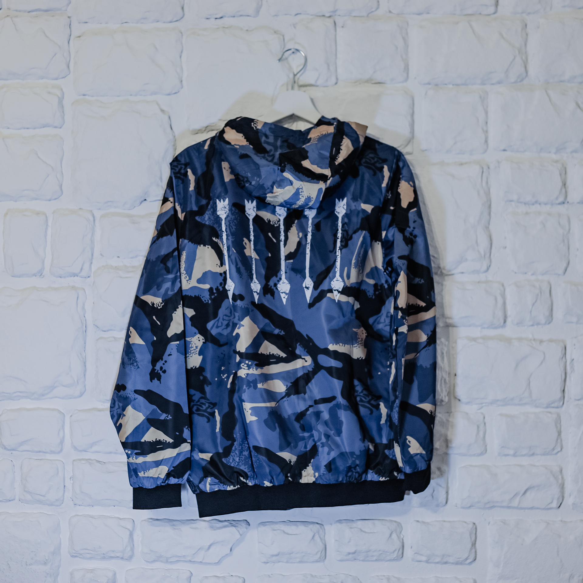 Windbreaker crafted from lightweight and durable materials such as nylon or polyester, designed to provide protection against wind and light rain. Features a front zip fastening, adjustable hood, and functional pockets, offering practicality and versatility for various weather conditions.
